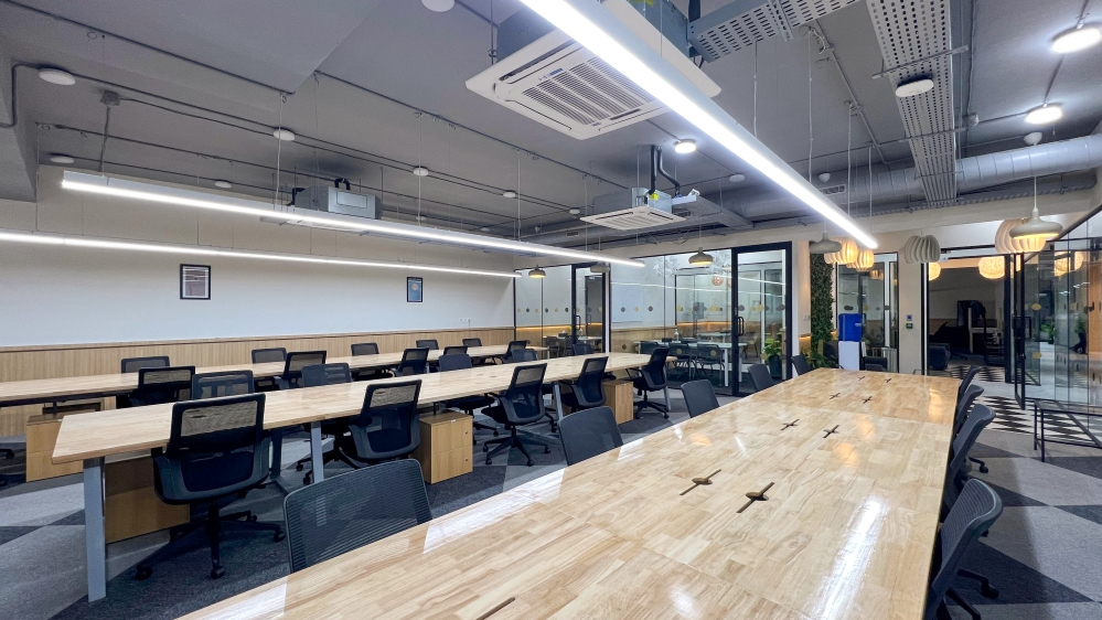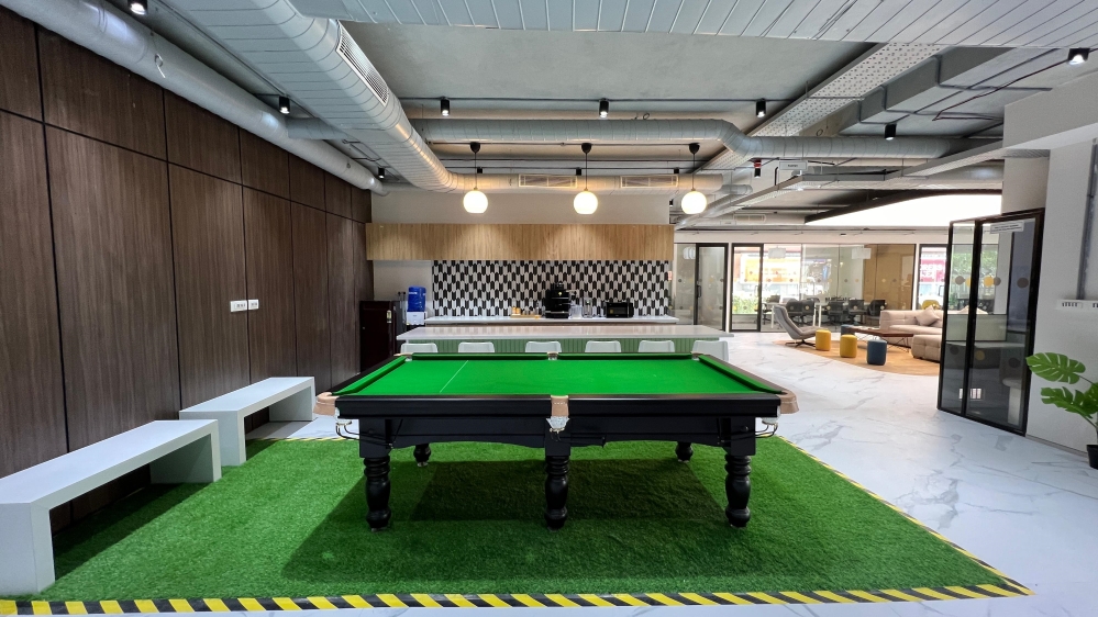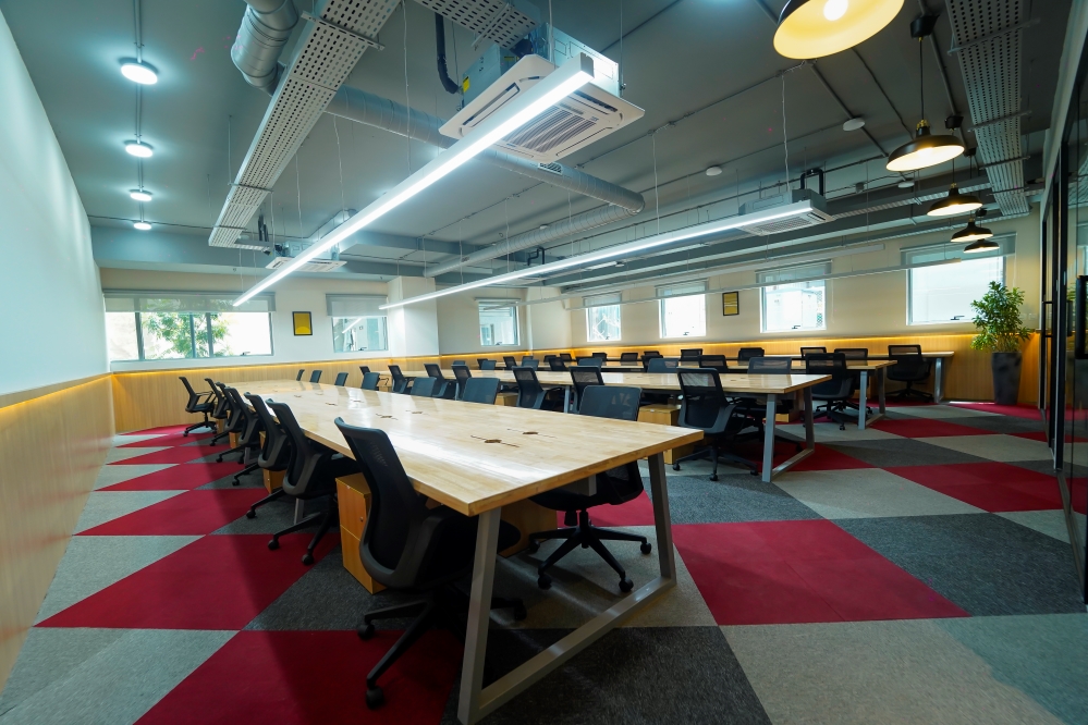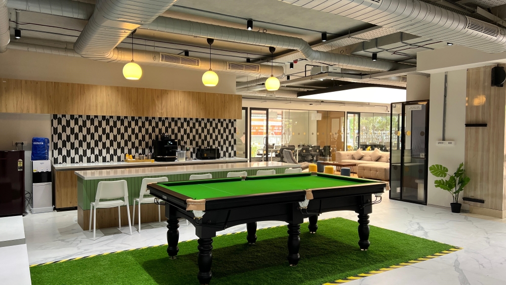 The façade reflects a modern architectural aesthetic, blending seamlessly into Bengaluru’s Central Business District while maintaining a distinct visual identity. Inside, the space prioritizes open-plan configurations, fostering collaboration and adaptability. With over 1,500 seats, the design incorporates modular seating arrangements that can be easily reconfigured to accommodate diverse team sizes and work styles.