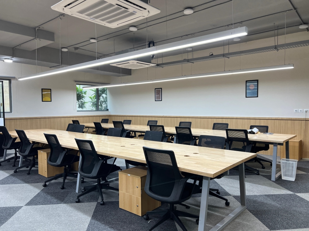 BHIVE Premium Address Maker, located in the vibrant neighbourhood of Indiranagar, Bangalore, spans 77,000 sq. ft., and has been thoughtfully conceptualised by In-house, led by Shweta Malagi. The interiors are shaped by a forward-thinking approach that reimagines the future of work through a refined blend of functionality and visual clarity. Designed to host a diverse community of professionals, the layout encourages fluid movement and ease of interaction, enabling a seamless flow between individual and collective work settings. Office interior design brings a calm elegance to the space, where a balance of simplicity and intent defines the design language.
