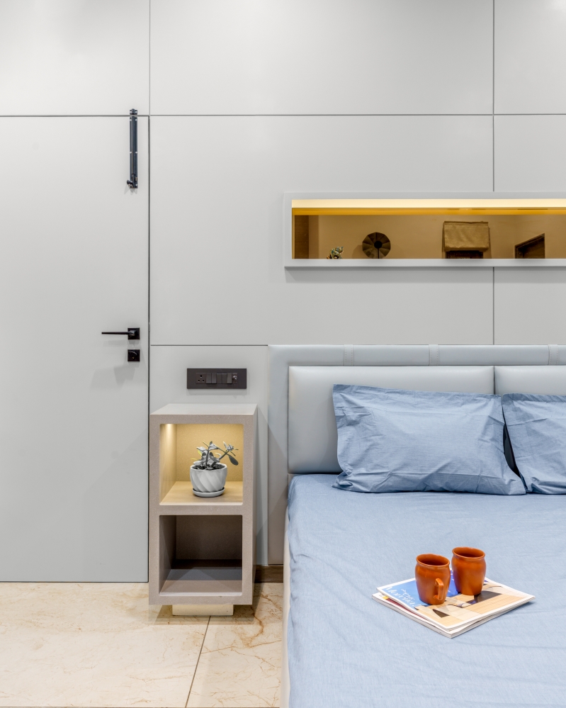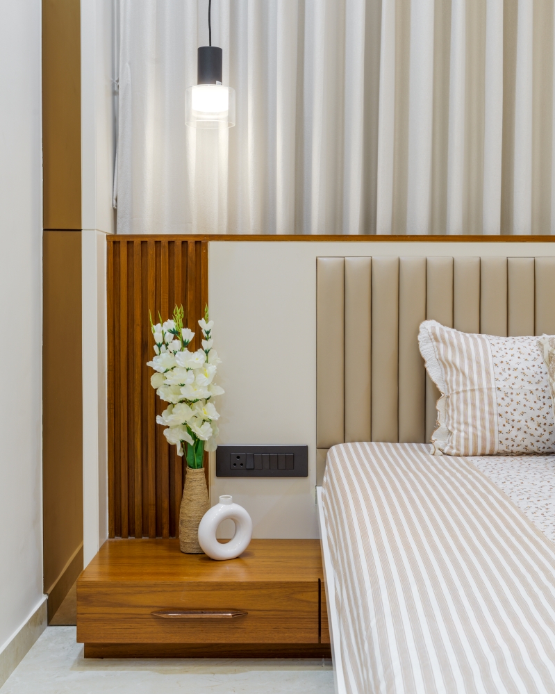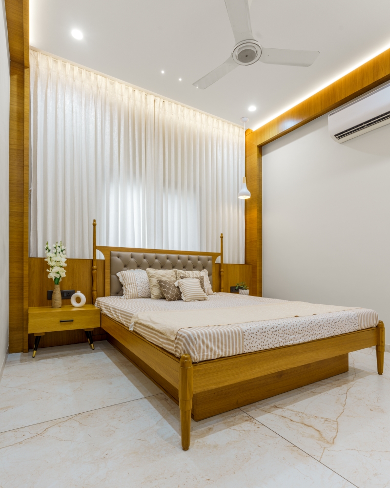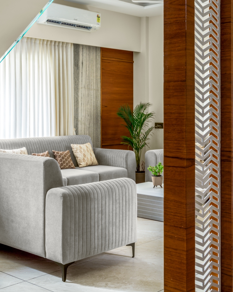 The Principal Architect, Pawan Jangid, shares that the vision was to craft a home that feels inviting yet contemporary. Every element—from wall textures, lighting fixtures, to furniture and artefacts- was chosen to enhance comfort and harmony. The interiors emphasise clean lines, subtle luxury, and functional design, making each space a true reflection of the client’s lifestyle and the studio’s design creativity.
