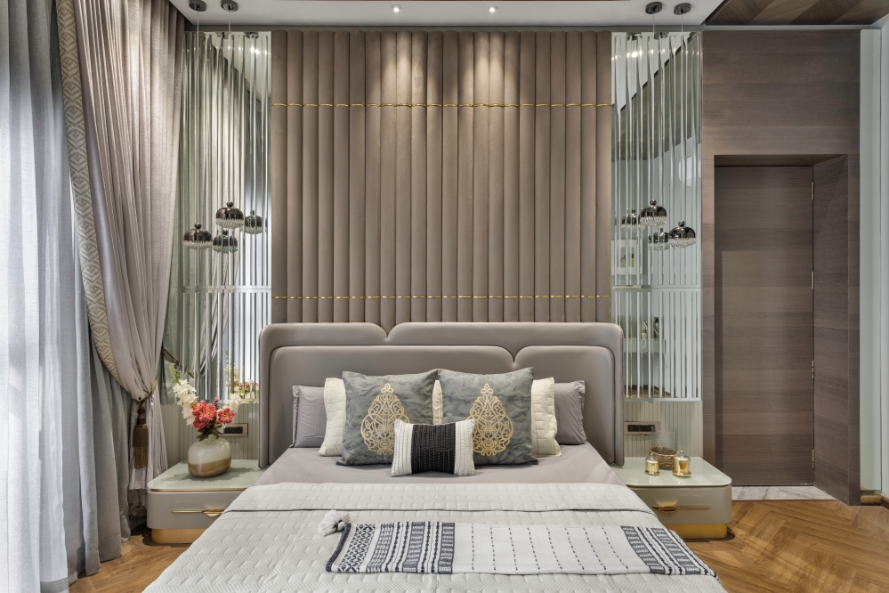 The other bedroom, characterized by hues of beige and browns, exudes class and finesse. The attention to detail is evident in every corner, creating a cohesive and sophisticated aesthetic.