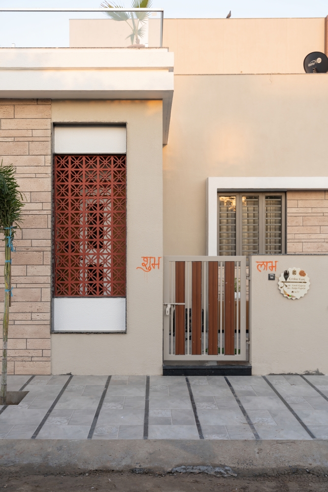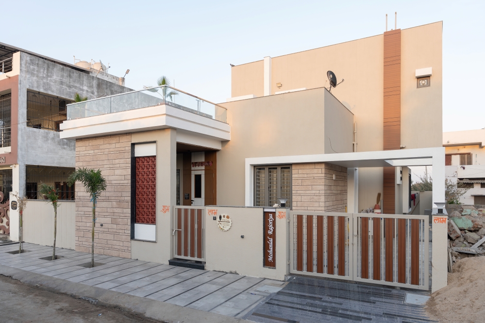 Krishna Kunj is a 1,900 sq. ft. private residence located in Adipur, Kutch, designed by Vee Design Studio under the guidance of Principal Designer Vijay Sathwara. Conceived as a contemporary family home, the project reflects a balanced interplay of functionality, spatial clarity, and understated elegance. The design language is rooted in simplicity, allowing materials, proportions, and thoughtful detailing to define the character of the home while ensuring comfort, durability, and visual harmony throughout.